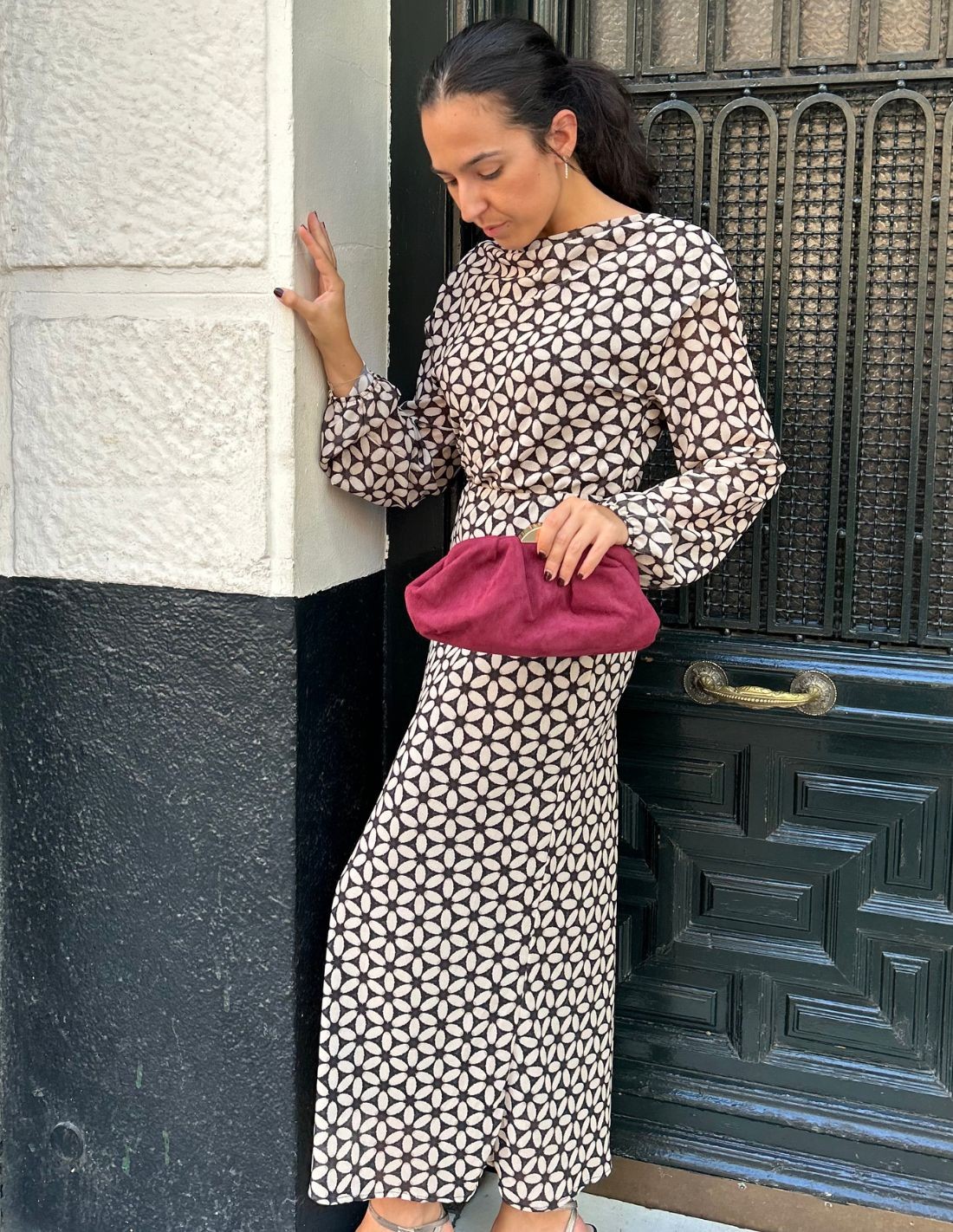 Este Bolso de fiesta de antelina para invitada cuenta con forro y bolsillo interior para organizar lo esencial con comodidad. El cierre metálico dorado le da un toque chic y asegura tus pertenencias con estilo.